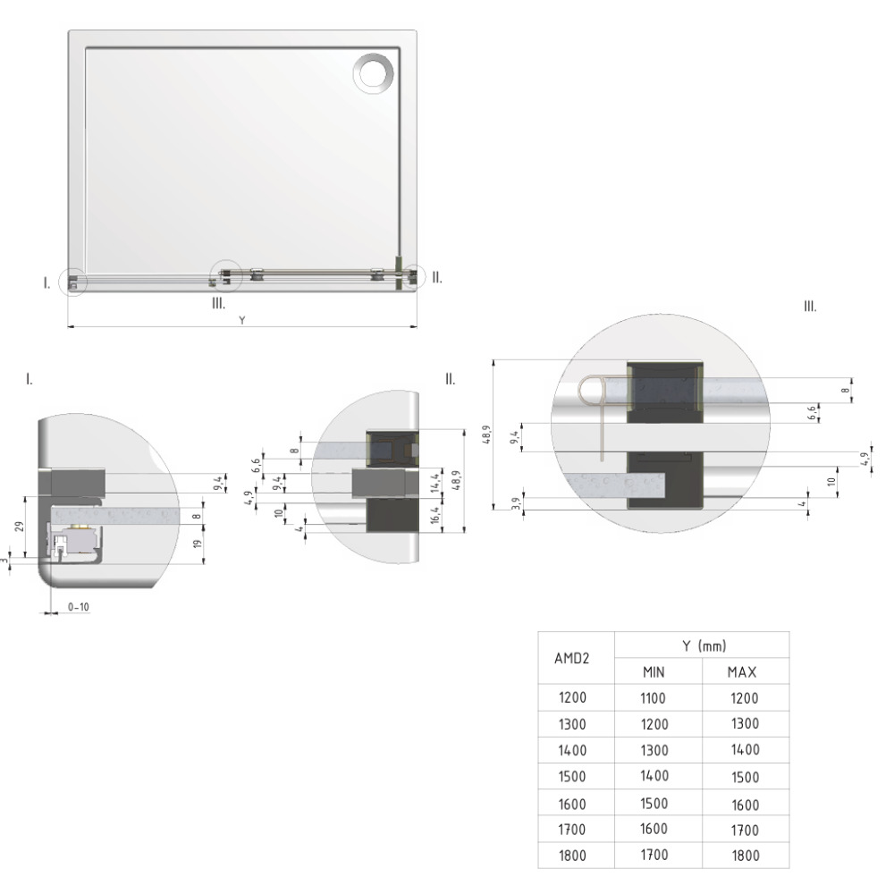 - Épaisseur du verre coulissant : 8 mm