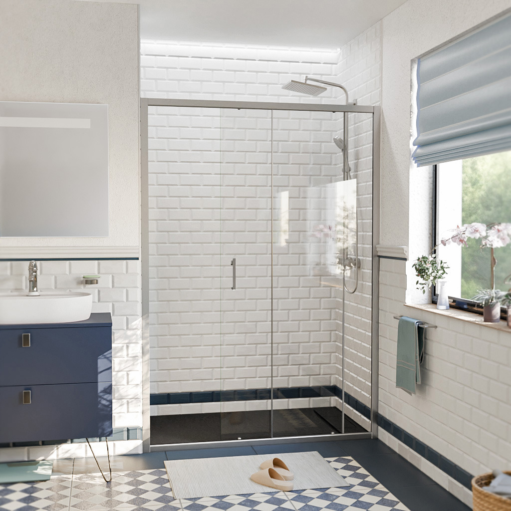 Apportez une touche d’élégance et de praticité à votre salle de bain avec la porte de douche coulissante Pura de Céramia.