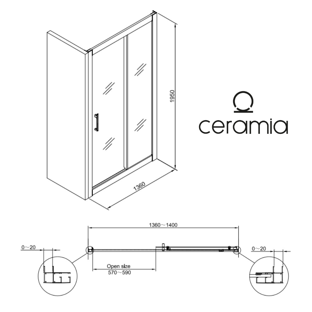 Caractéristiques de la porte de douche Pura 140x195cm coulissante anticalcaire avec profilés Chrome brillant (CERAHP140C) :