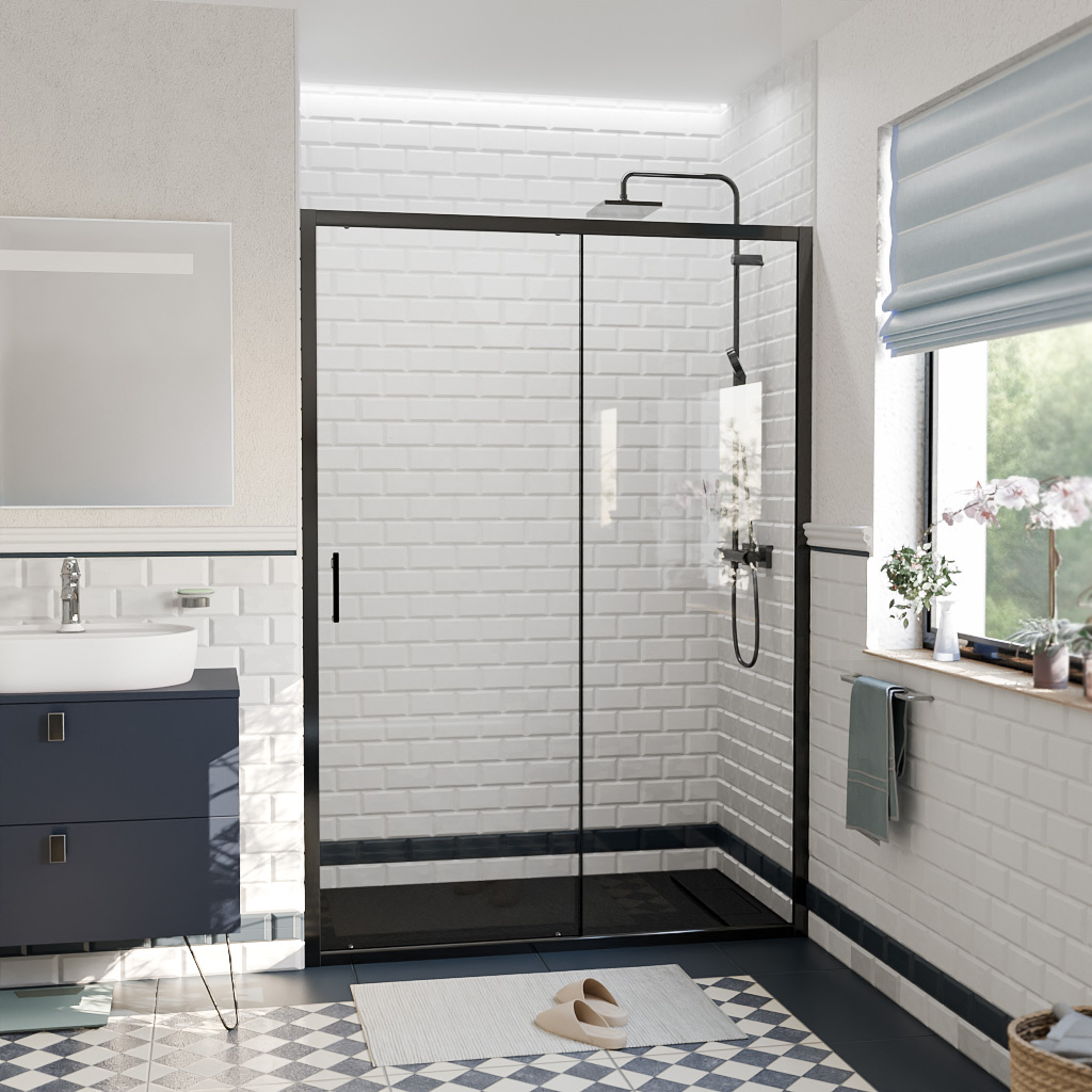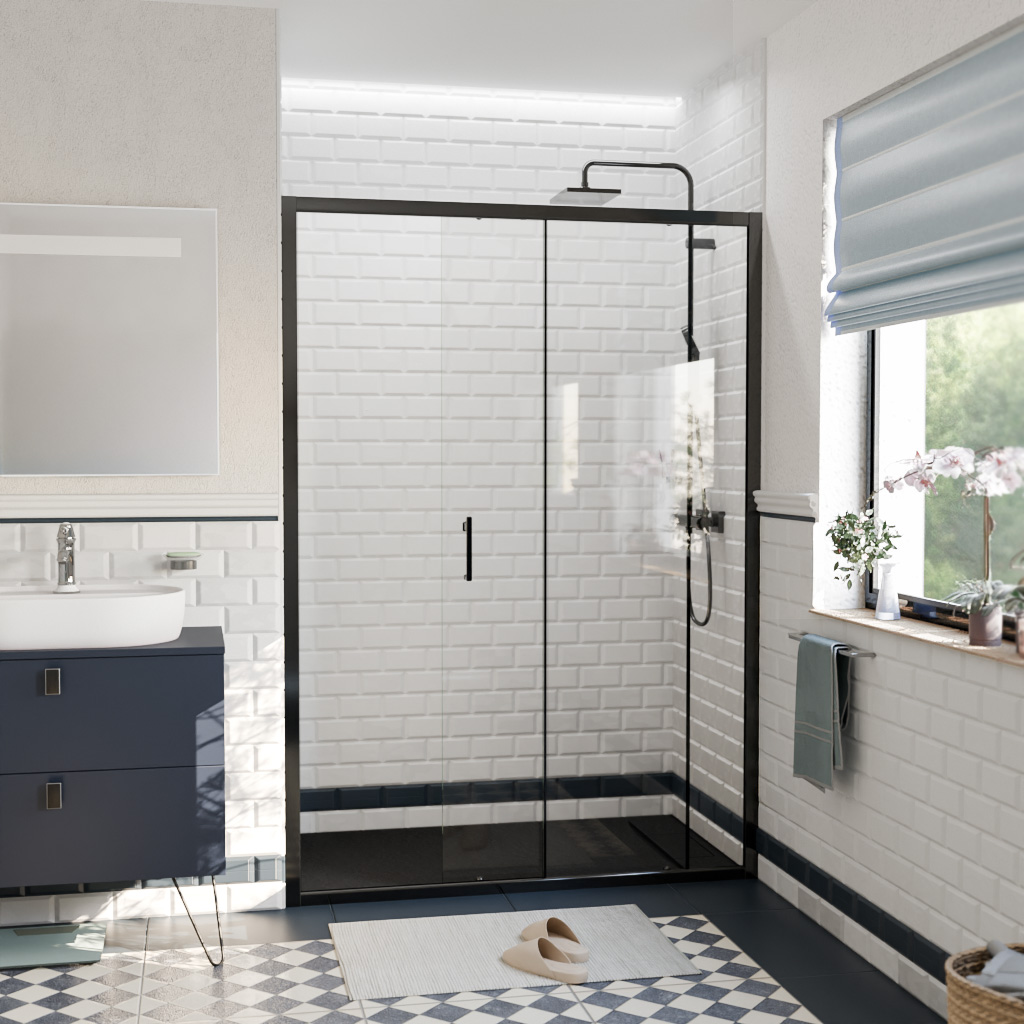 Ceramia PURA Porte de douche 140x195cm coulissante anticalcaire avec profilés Noir mat (CERAHP140B)