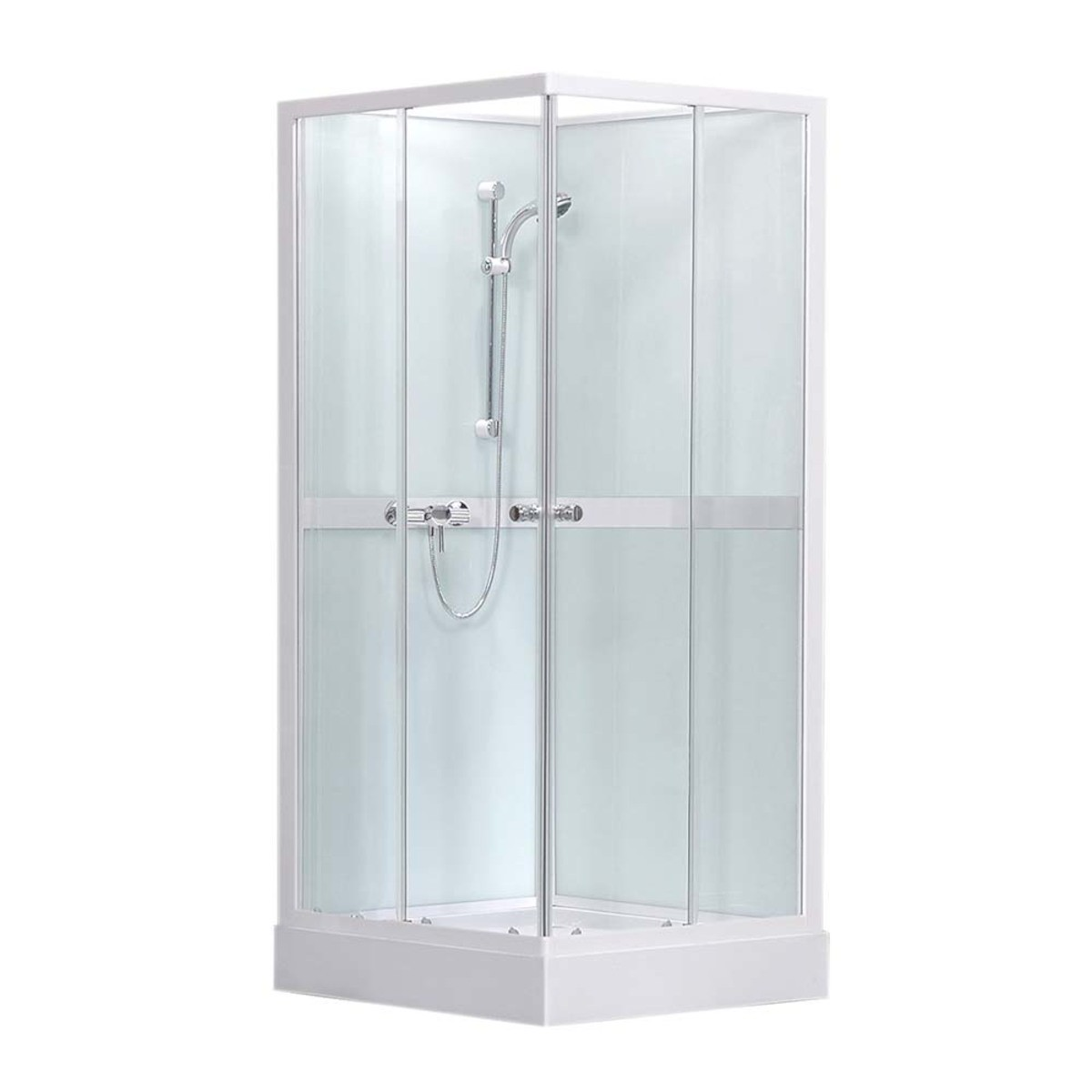 Caractéristiques de la cabine de douche carrée en verre sécurit 90x90 cm avec receveur, système de douche et profilés, Swiss Aqua Technologies Project, blanc (4000693) :