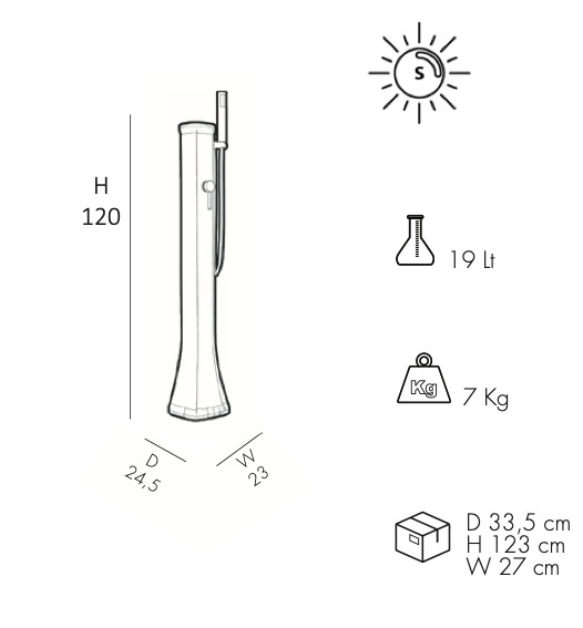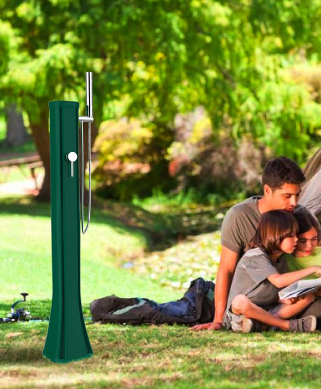 • Fabriquée en polyéthylène HD, c’ est une douche adaptée pour les personnes toujours en déplacement.
