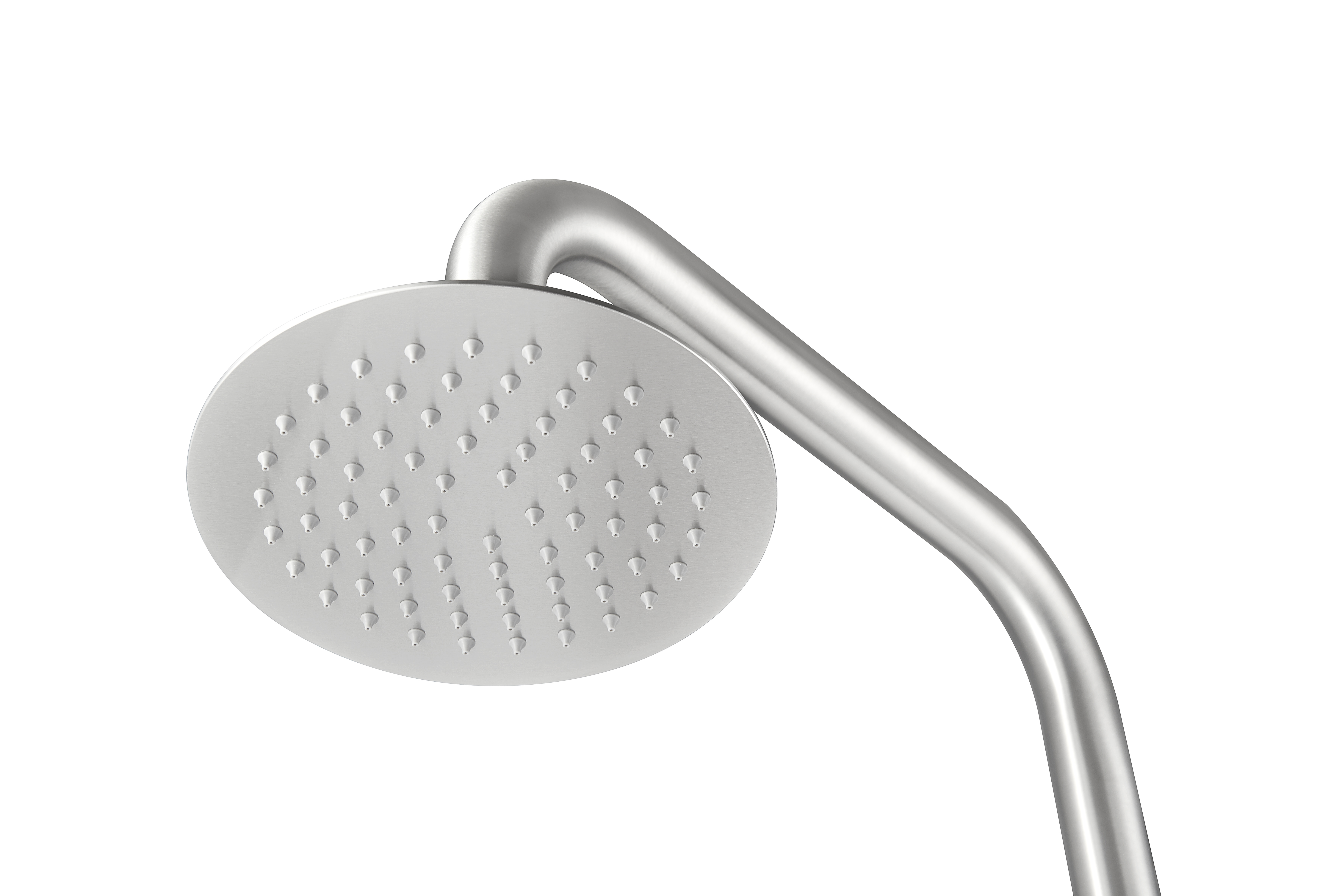 - Grande tête de douche : mesurant 20 cm de diamètre voilà une superbe tête de douche dont le corps est également en acier inoxydable. Pratique, cette tête de douche est pivotante et se positionne à la main à l'angle que vous préférez.