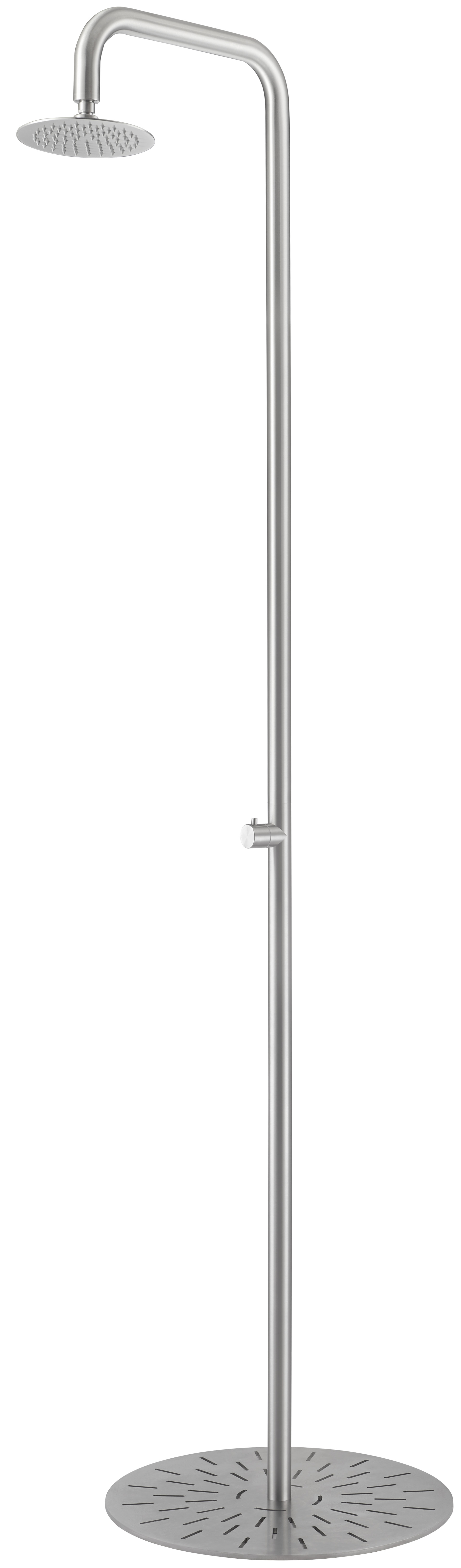 En plus d'être jolie et durable, la nouvelle douche extérieure NATUREL COLD18 est très pratique ! Grâce son socle rond en acier inoxydable massif, cette douche pèse 17 kg et est totalement stable. Vous pouvez la poser partout sans rien installer d'autre. Il suffit de brancher un simple tuyau d'arrosage eau froide pour pouvoir vous doucher immédiatement.