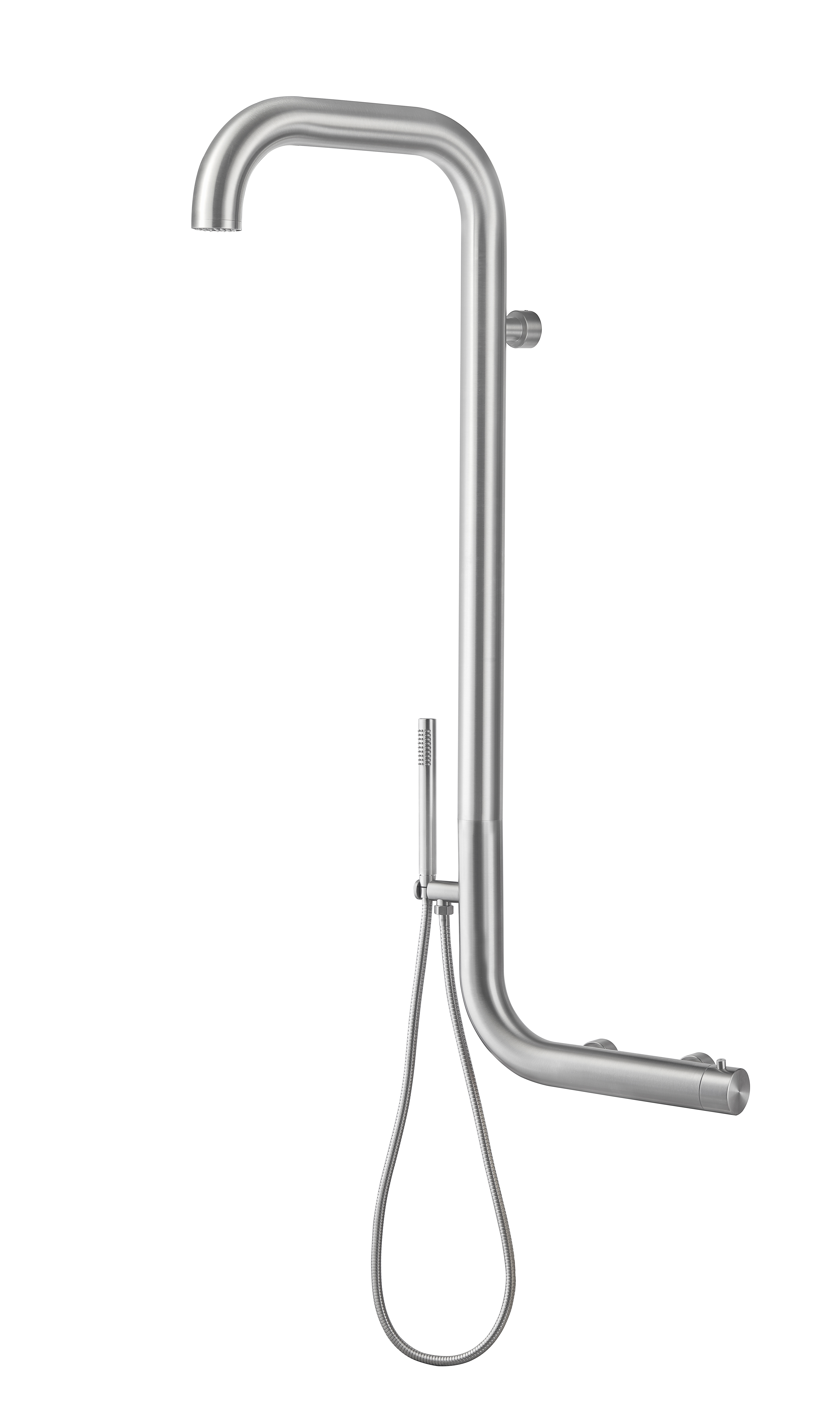 Naturel Douche extérieure murale en acier inoxydable 316, eau chaude et froide, douchette à main, acier brossé (NATUREL-IN15)