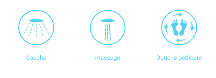 - Utilisation double face avec triple fonction: douche, massage, douche pédicure