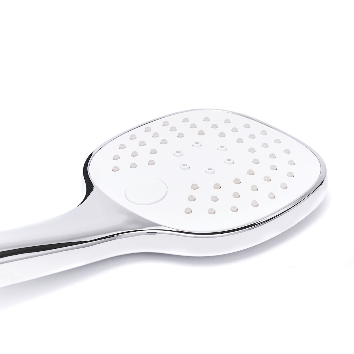 - Nouvelle douchette à main exclusive dans un design blanc élégant et avec un bouton pour commuter facilement les jets de douche.