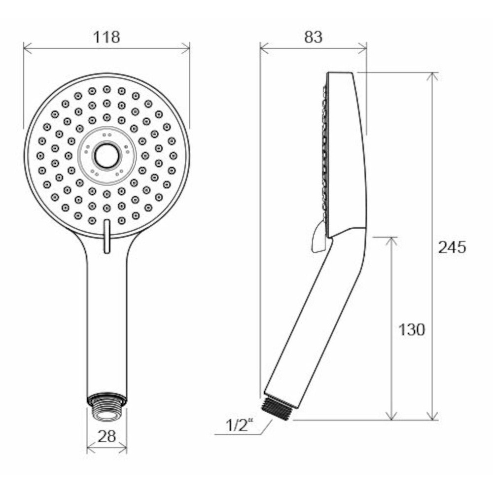 Douchette à main avec 3 fonctions d'un diamètre de 12cm. En forme de rond.
