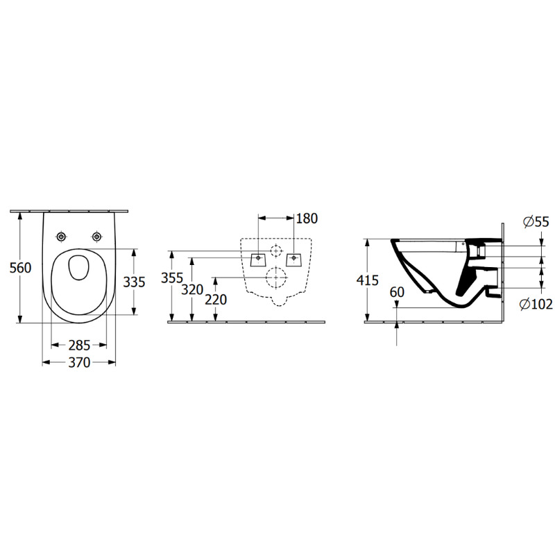 Caractéristiques du WC suspendu sans bride à fond creux, avec DirectFlush + Abattant amovible avec frein de chute, Blanc, Villeroy & Boch Universo Combipack (4670T901) :