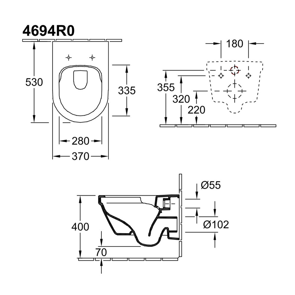 • Dimensions de la cuvette: L530 x H330 x l370 mm