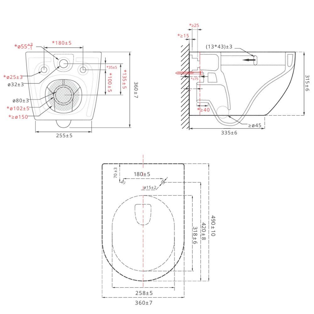 - Sortie d'eau "invisible" : l'évacuation est situé sur le côté droit de la cuvette.