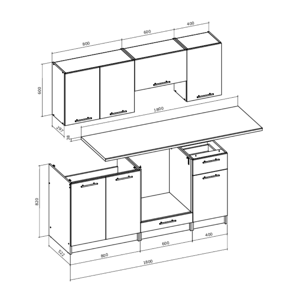 Caractéristiques de la Chili 1,80m ensemble de meubles de cuisine à assembler (KSETCHILI) :