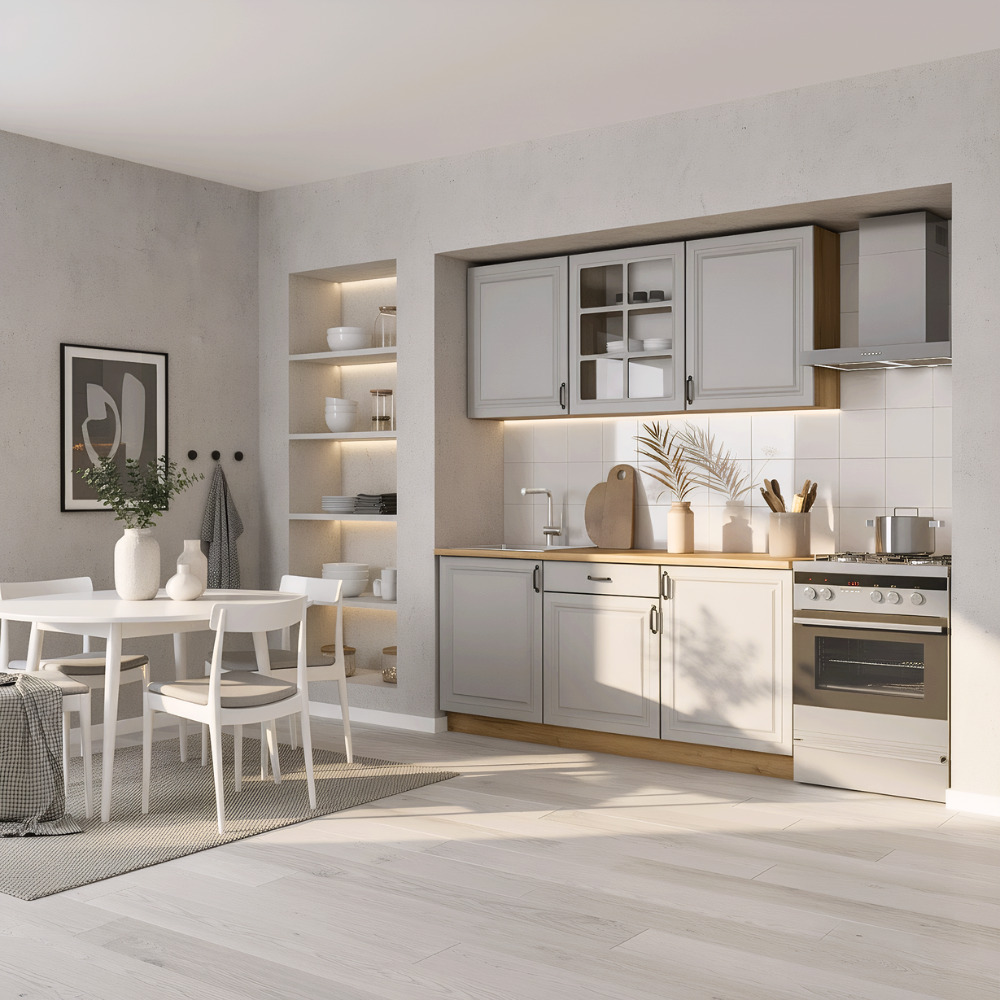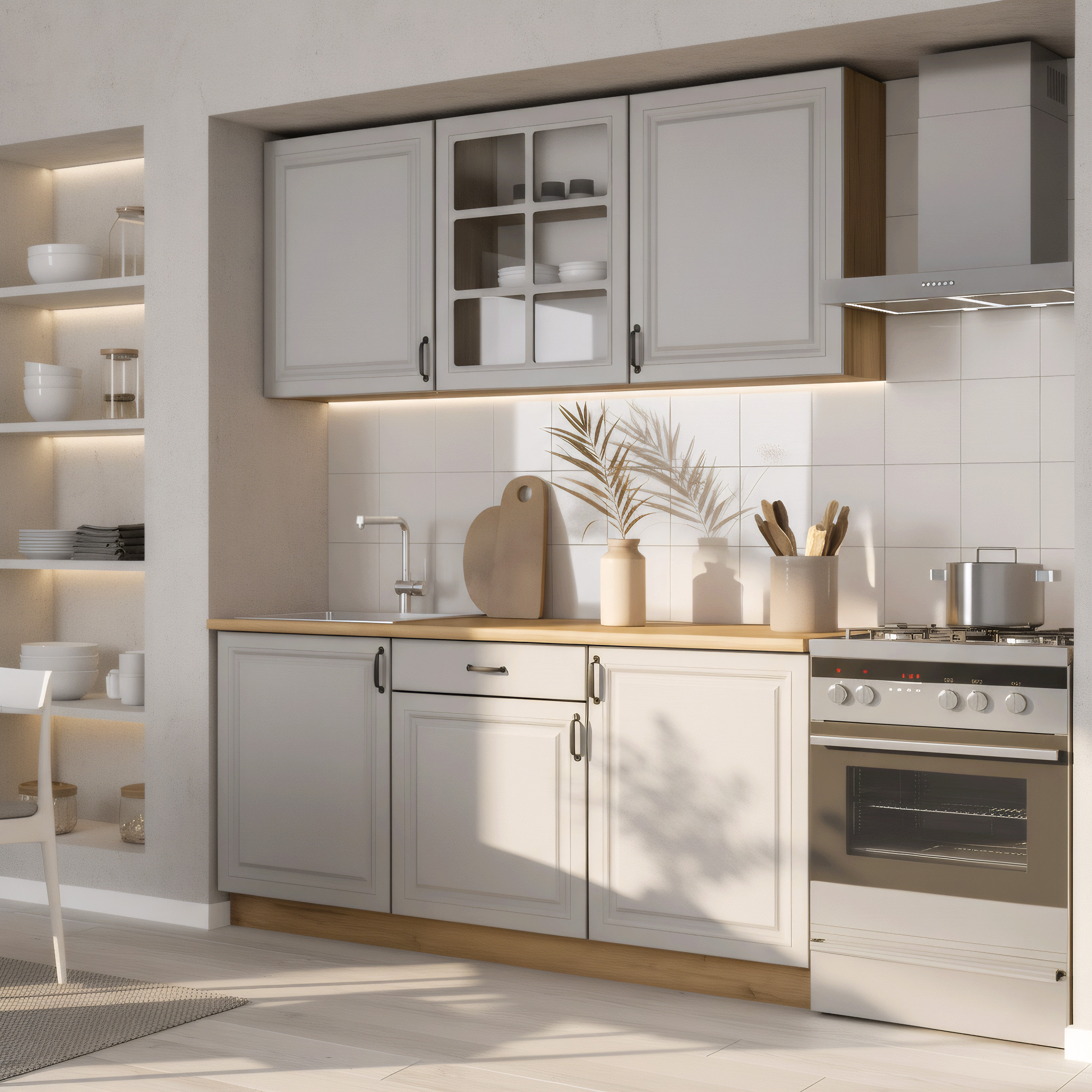 Caractéristiques de la cuisine complète à assembler 1,8 m, Naturel Loria (KSETLORIA) :
