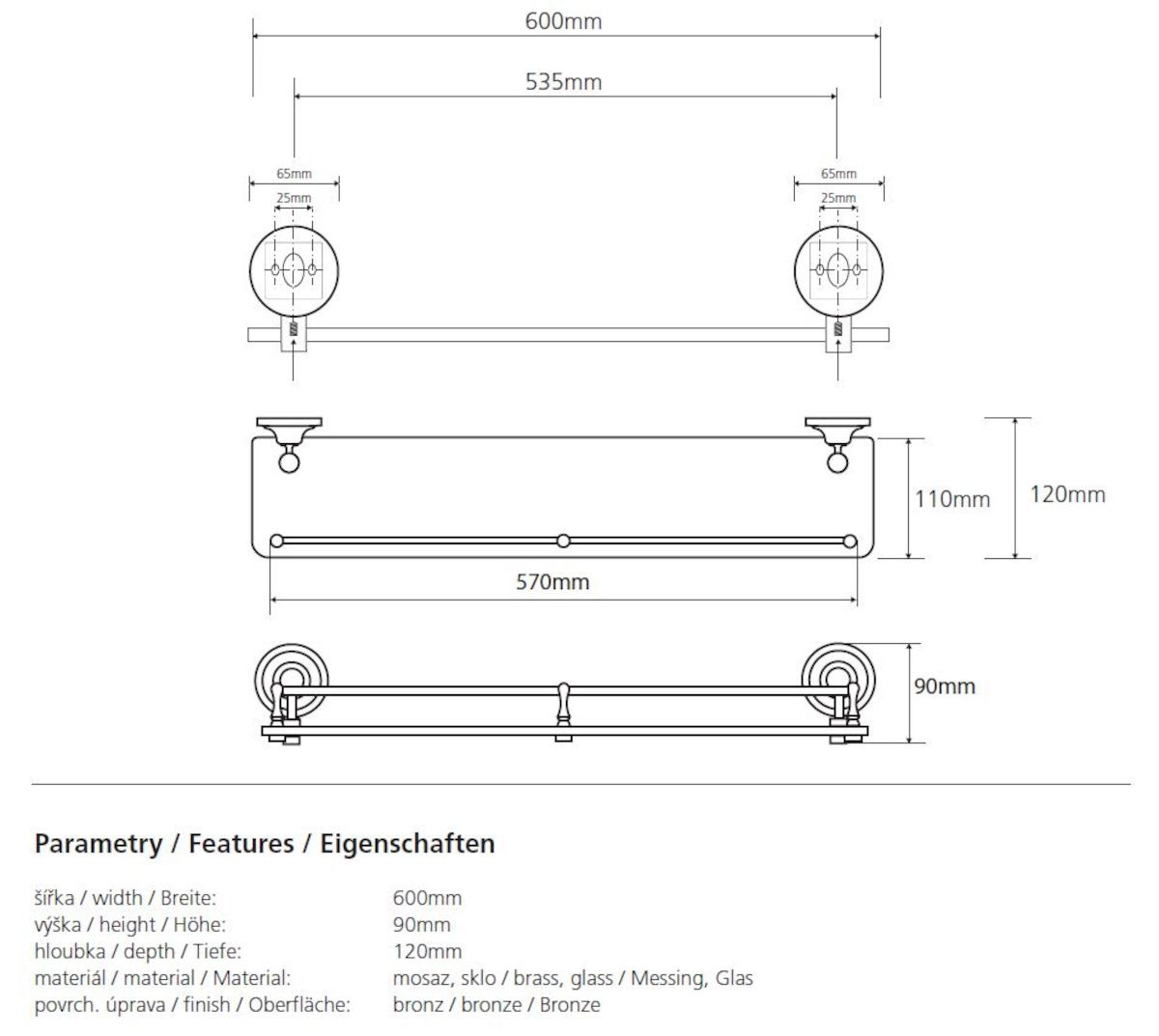 Caractéristiques de l’étagère en Laiton et Verre, Bronze Bemeta Ricordi (OPTIMARIC24BR) :