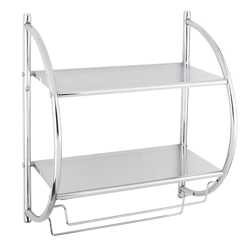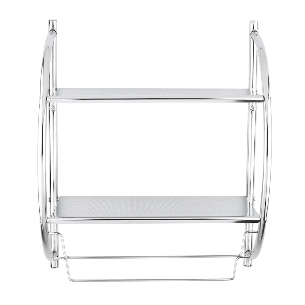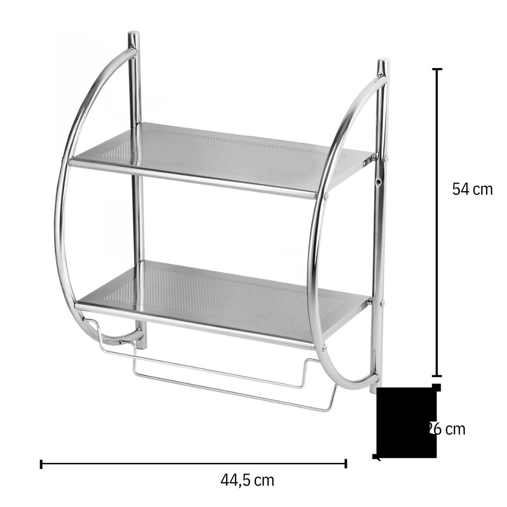 L'élégante étagère murale en arc de cercle SIKO, dotée de deux compartiments de rangement faciles à laver et d'un porte-serviettes très pratique, est un accessoire de salle de bains multifonctionnel très pratique.