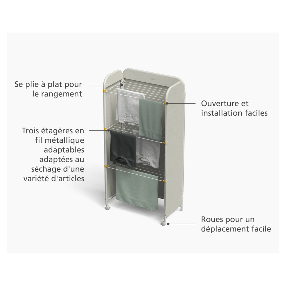 Caractéristiques du séchoir à linge à 3 niveaux avec panneaux, Joseph Joseph Eclipse™ , écru (50055) :