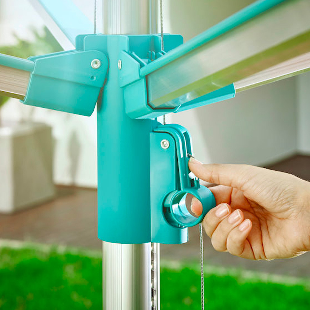 • Fermeture du séchoir parapluie grâce au système de déverrouillage facile à utiliser situé sur le mât