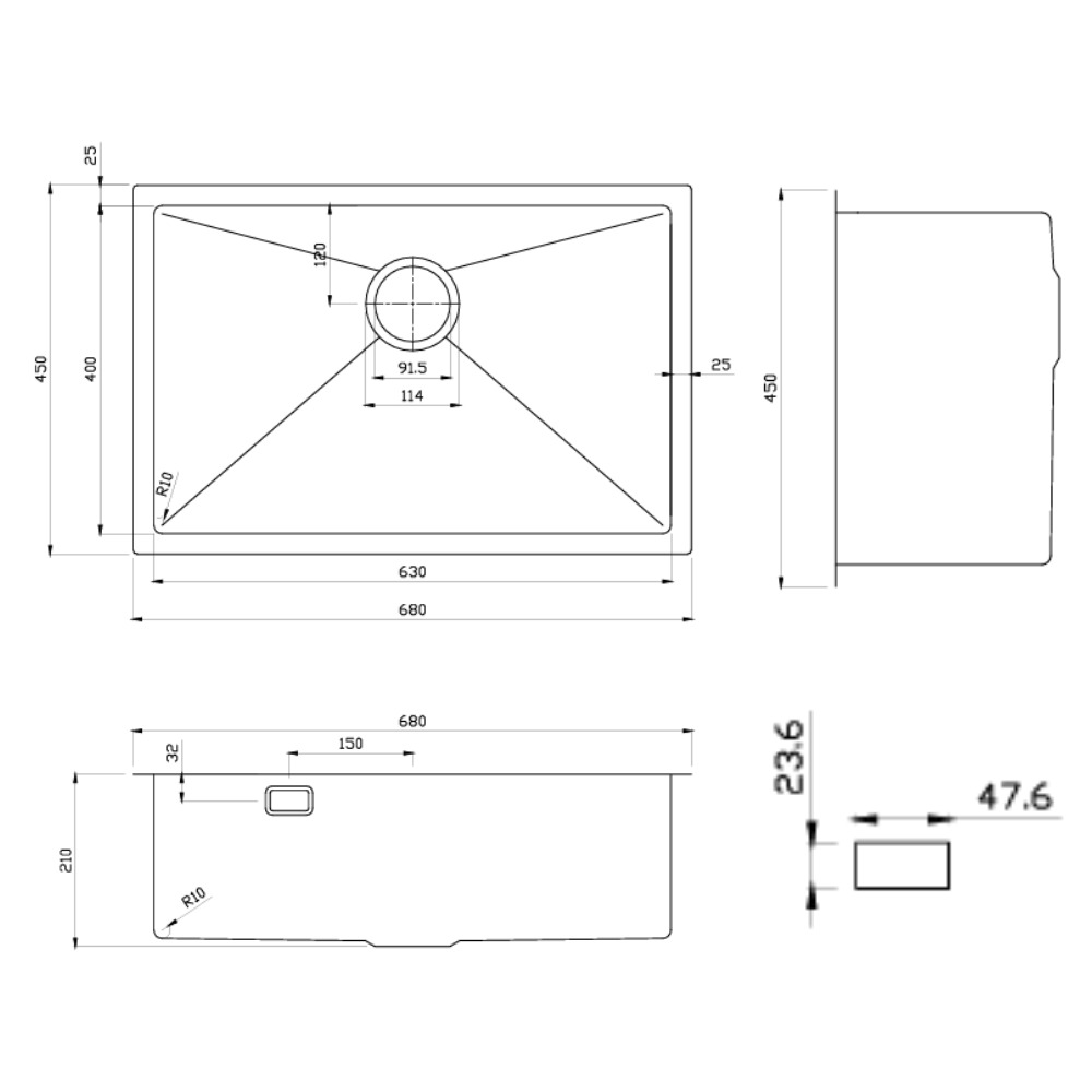Caractéristiques de l'évier en acier inoxydable, 68x45x21 cm, or rose Swiss Aqua Technologies Aurum (SATSINK6845BRGU) :