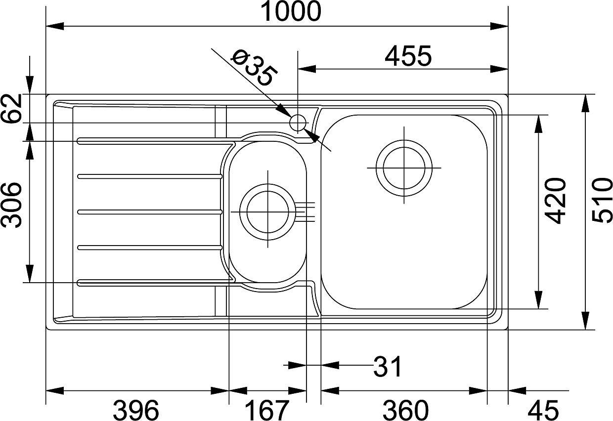 Franke NEPTUN - Inox Evier NEX 651/7, 1000x510 mm, droite (101.0120.276)