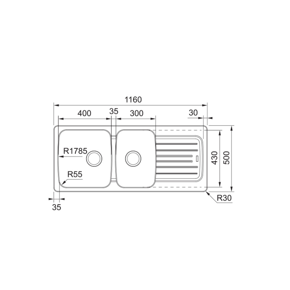 Aveta AVD 621 Evier 116x50cm avec double cuve et égouttoir réversible, Fradura, Gris (AVD621SE)