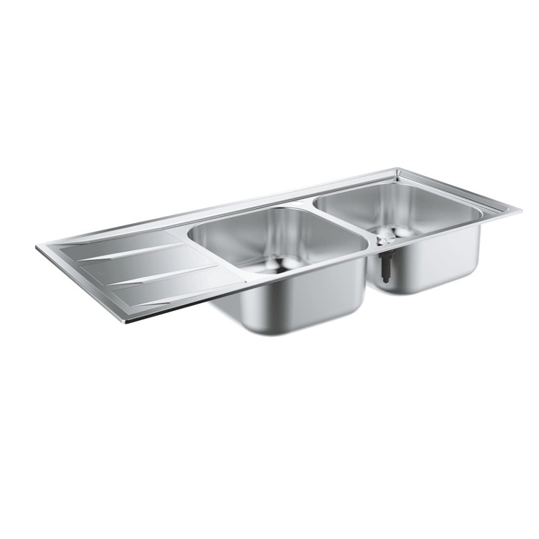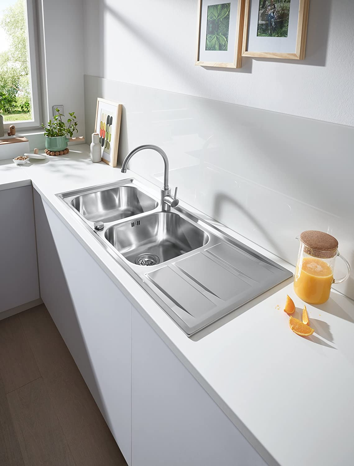 Grohe K400 Evier à encastrer 1160 x 500mm avec 2 grandes cuves + égouttoir réversible, Acier inoxydable (31587SD0)
