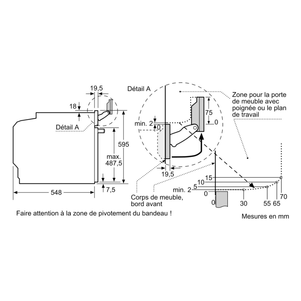 - Profondeur de la niche d'encastrement : 55 cm
