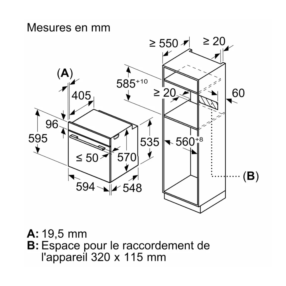 - Hauteur minimum de la niche d'encastrement : 56 cm