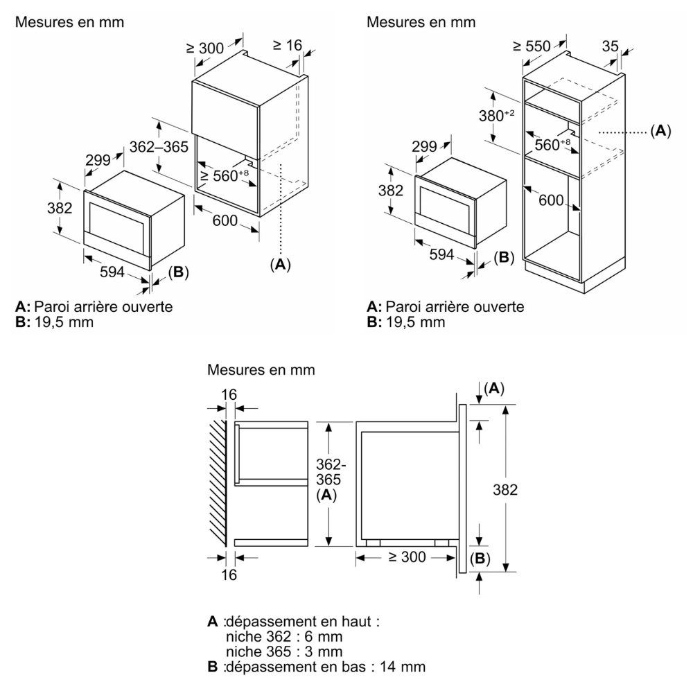 - Hauteur minimum de la niche d'encastrement : 36,2 cm