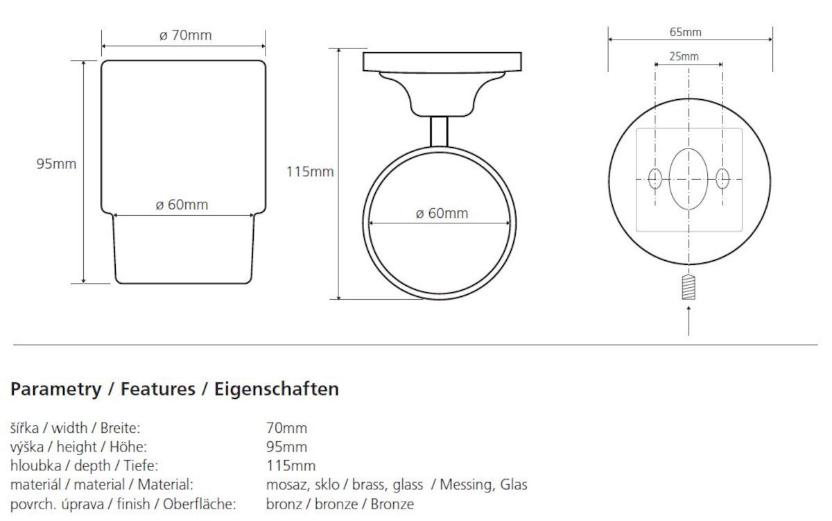 Caractéristiques du porte-verre en Laiton, Bronze Bemeta Ricordi (OPTIMARIC27BR) :