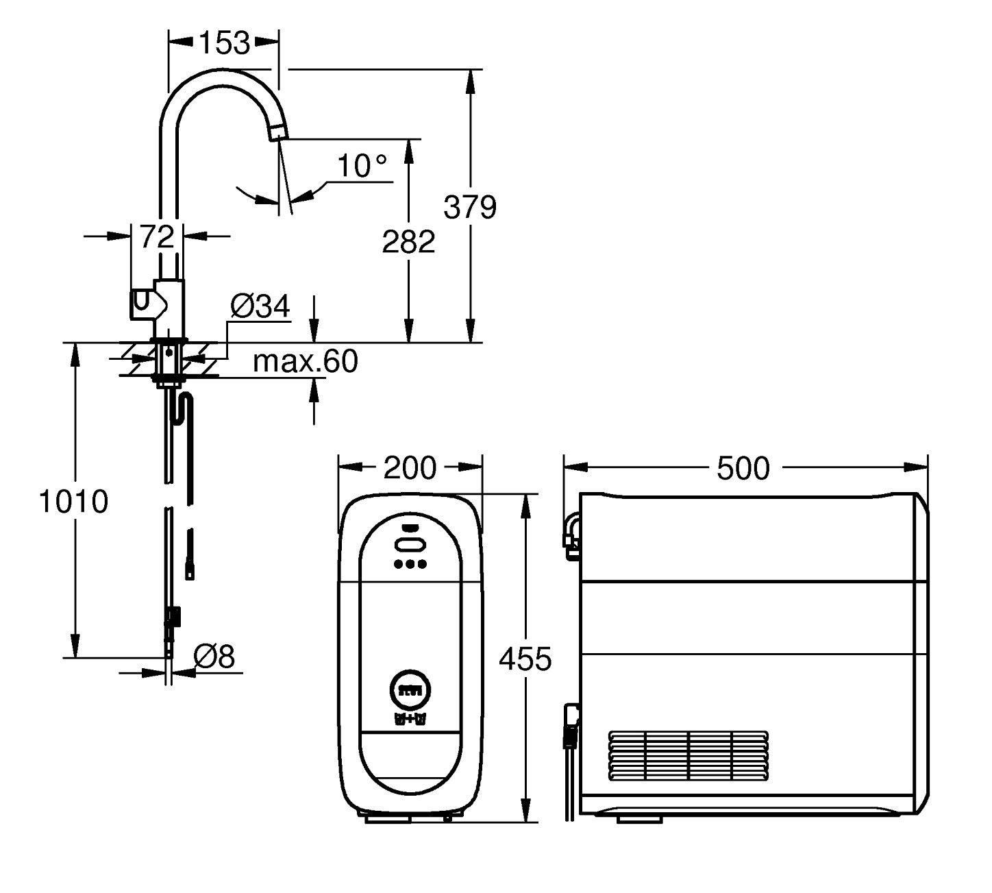 Ajustable pour le filtre GROHE BLUE taille S; le filtre à charbon actif et le filtre magnésium