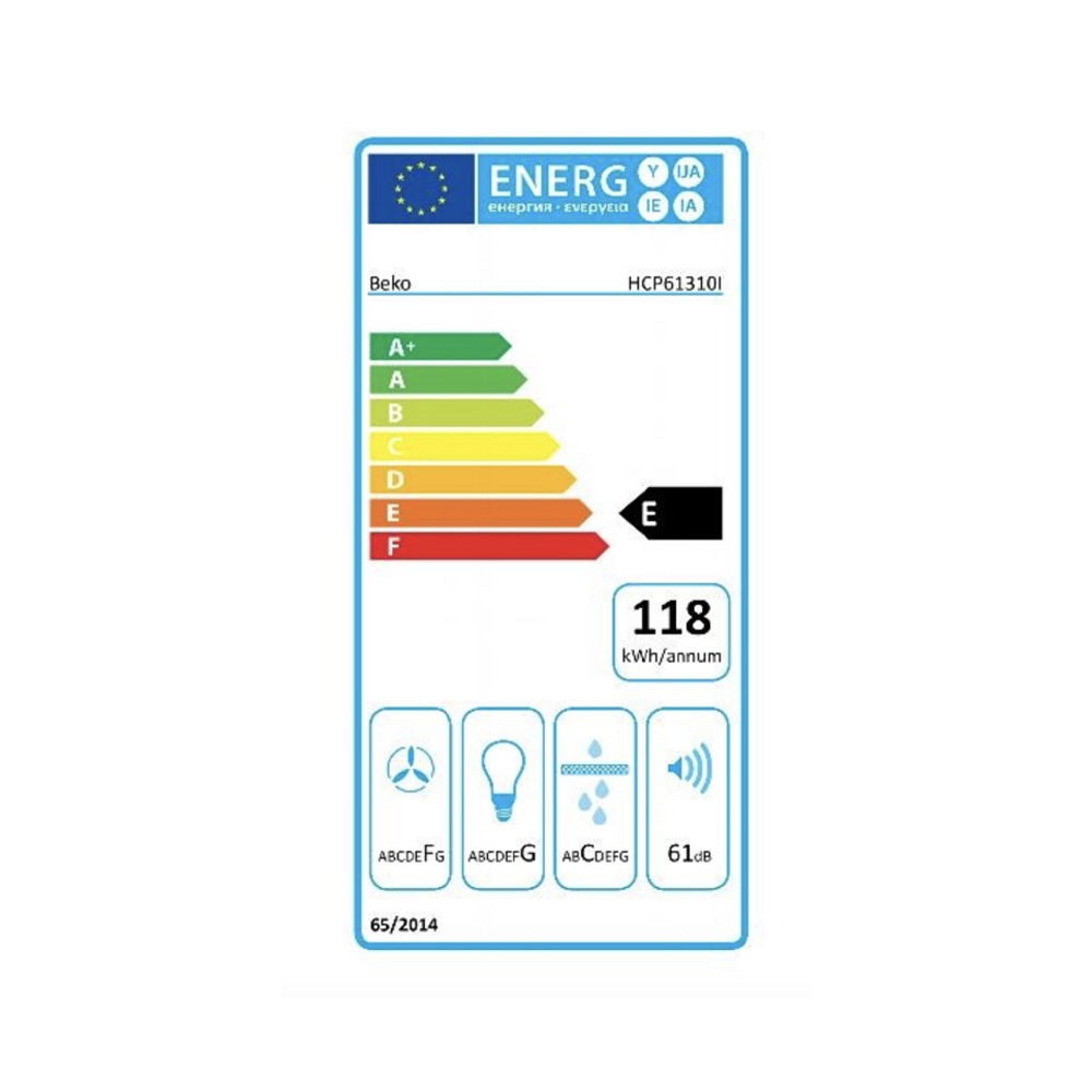 Beko Hotte de cuisine murale avec 3 vitesses, Acier inoxydable (HCP61310I)