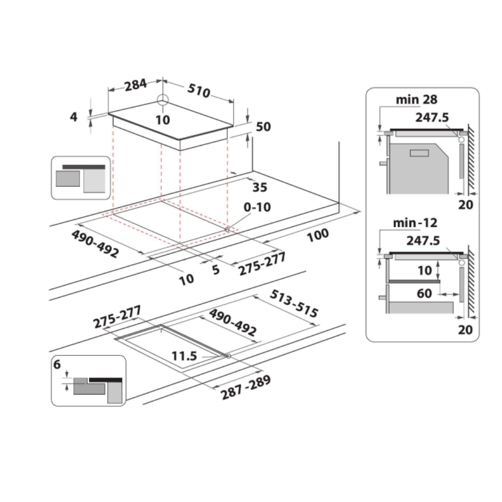 - Dimensions du niche d’encastrement : Largeur minimale 27,7 cm × Profondeur 49 cm