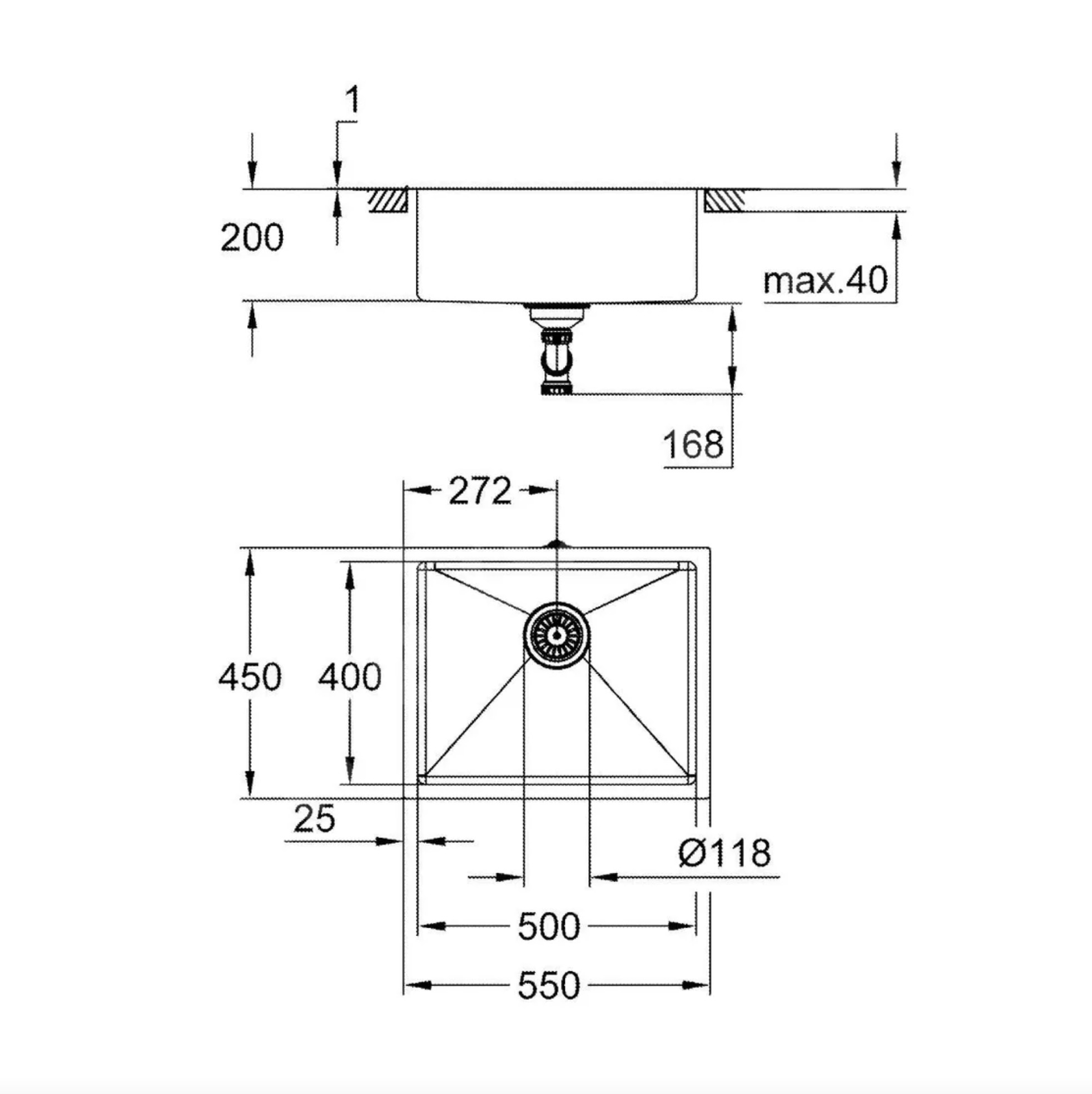 - Grohe K700 Evier sous-plan 540 x 440mm + Siphon, bonde et vidage inclus, Acier inoxydable (31574SD1)