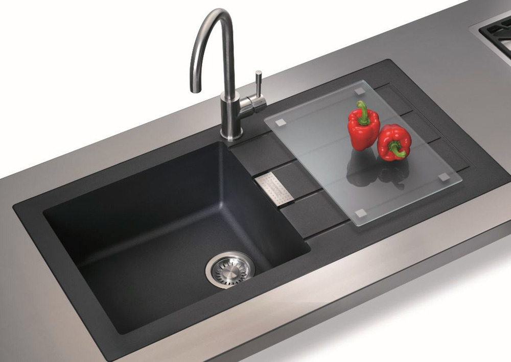 Cet évier de cuisine en Tectonite est résistant aux températures élevées à court terme (jusqu'à 300 ° C), aux dépôts de saleté, aux rayures, aux produits chimiques et aux acides dans les aliments et les produits de nettoyage de cuisine.