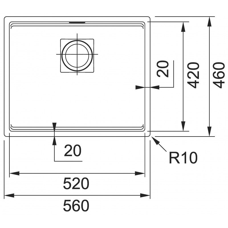 L'évier Franke KNG 110-52 appartient à la catégorie des petits éviers. Avec des dimensions de 560 x 460 mm et sans surface d'égouttement, il ne prend pas beaucoup de place. La cuve de l'évier 520 x 420 x 200 mm est spacieuse et offre suffisamment d'espace pour toutes les tâches de la cuisine.