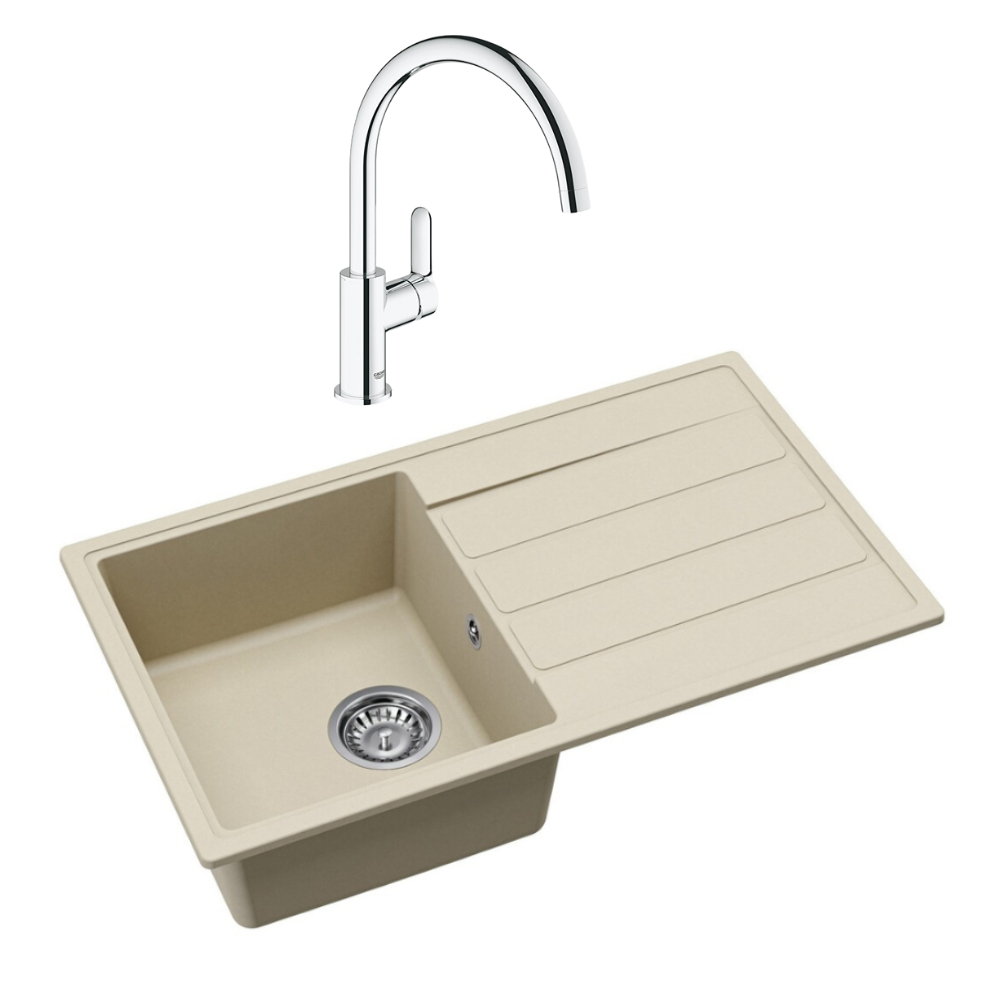 Swiss Aqua Technologies 76x44 cm évier avec égouttoir réversible en granite à encastrer + mitigeur monocommande, jasmin (SATSINKGE3J-SET)
