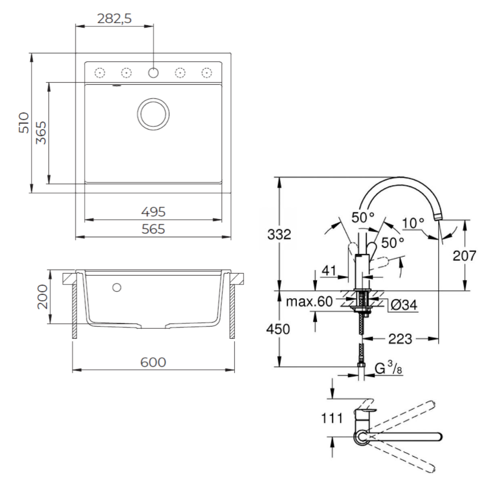 56,5x51cm évier en Granite, à encastrer, jasmin (SATSINKGQQ100J) :