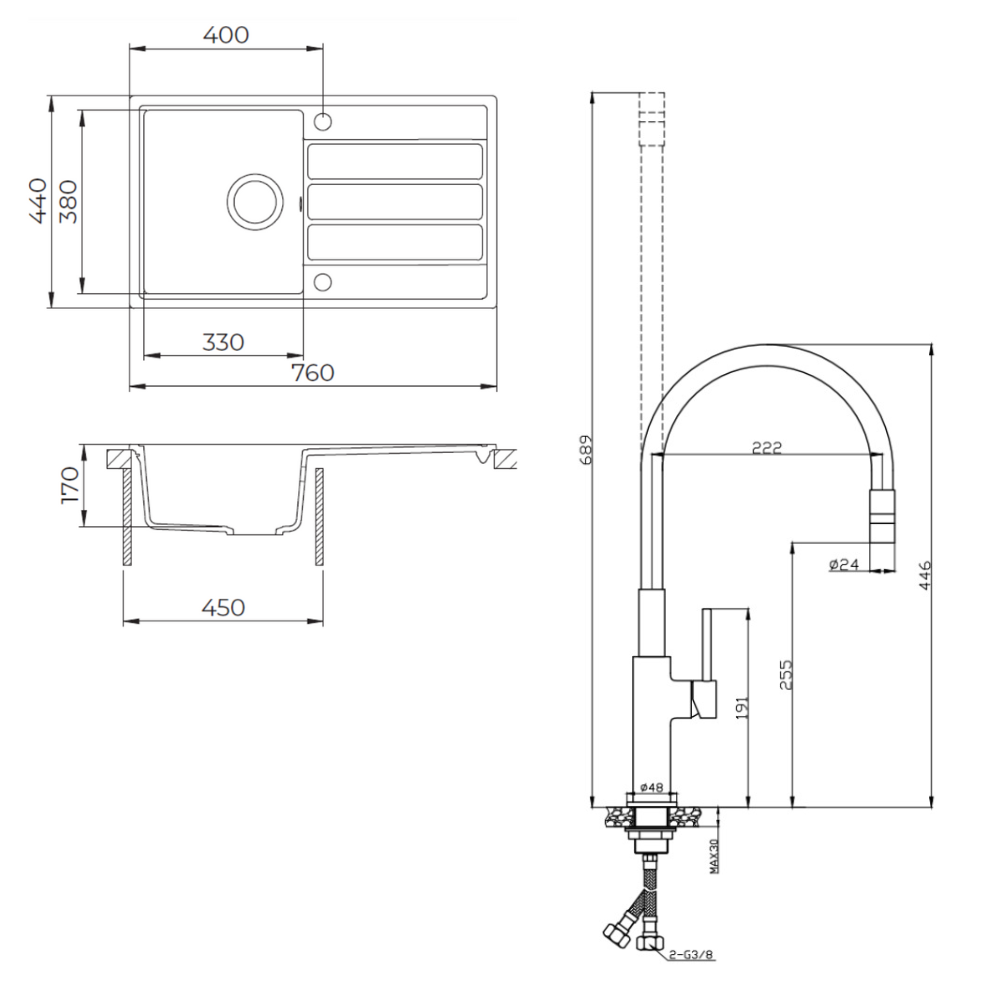 - Type de produit:Evier + mitigeur