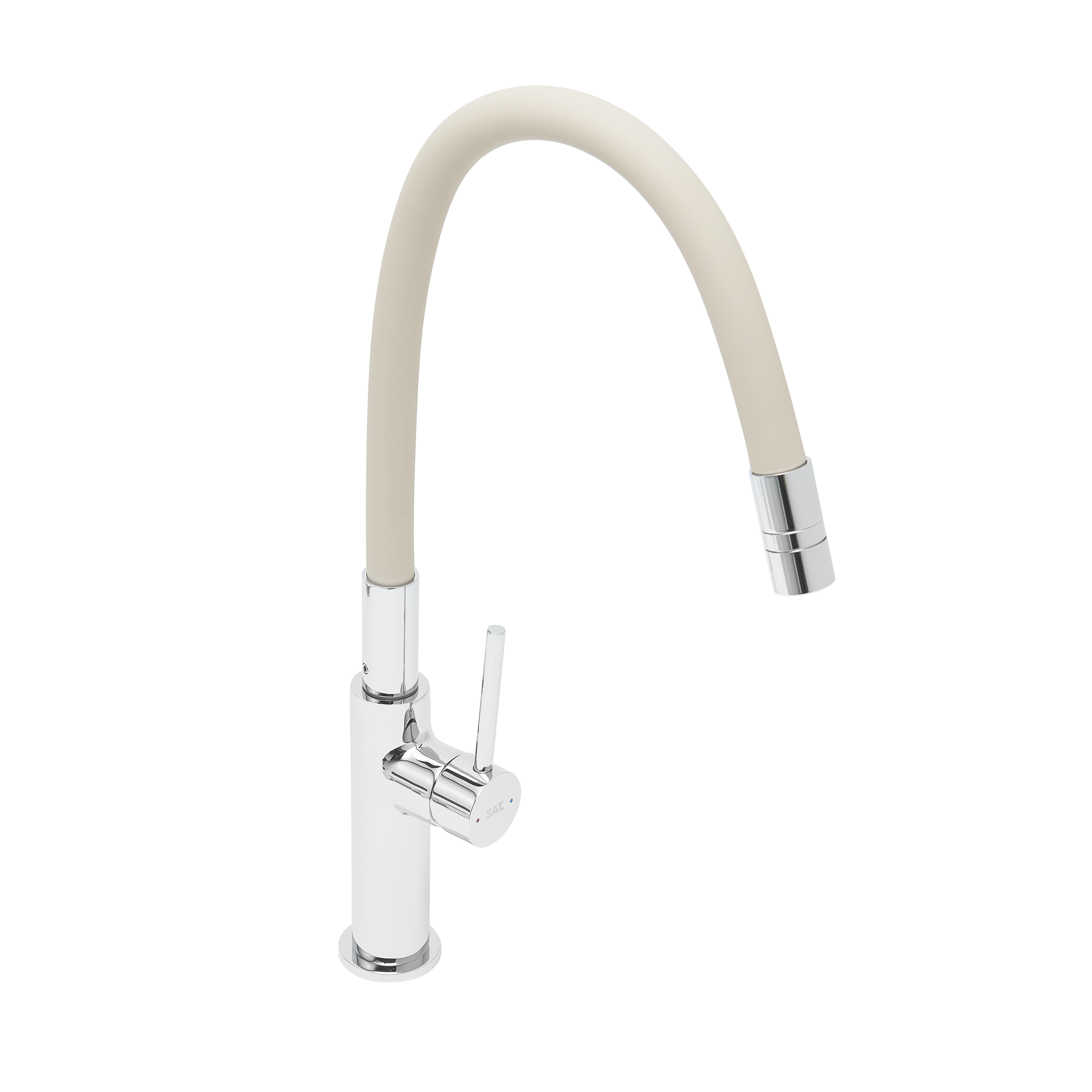 Mitigeur évier de cuisine, bec flexible silicone, aérateur Neoperl®, cartouche en céramique, crème/chrome (SATBSD290BE) :