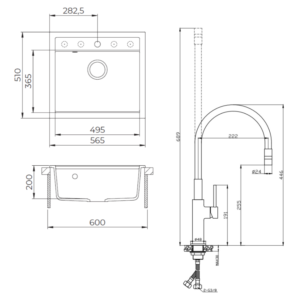 - Type de produit:Evier + mitigeur