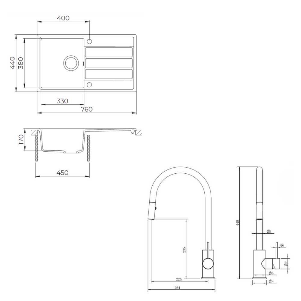 - Dimensions de l'évier : 76x44 cm
