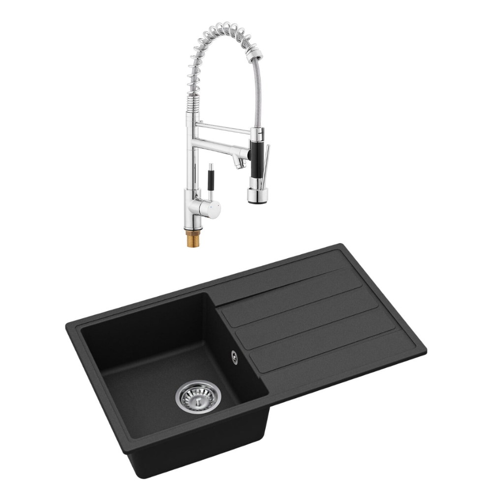 Swiss Aqua Technologies 76x44 cm évier avec égouttoir réversible en granite à encastrer + mitigeur à bras pivotant, 2 jets, noir mat (SATSINKGE3B-SET2)