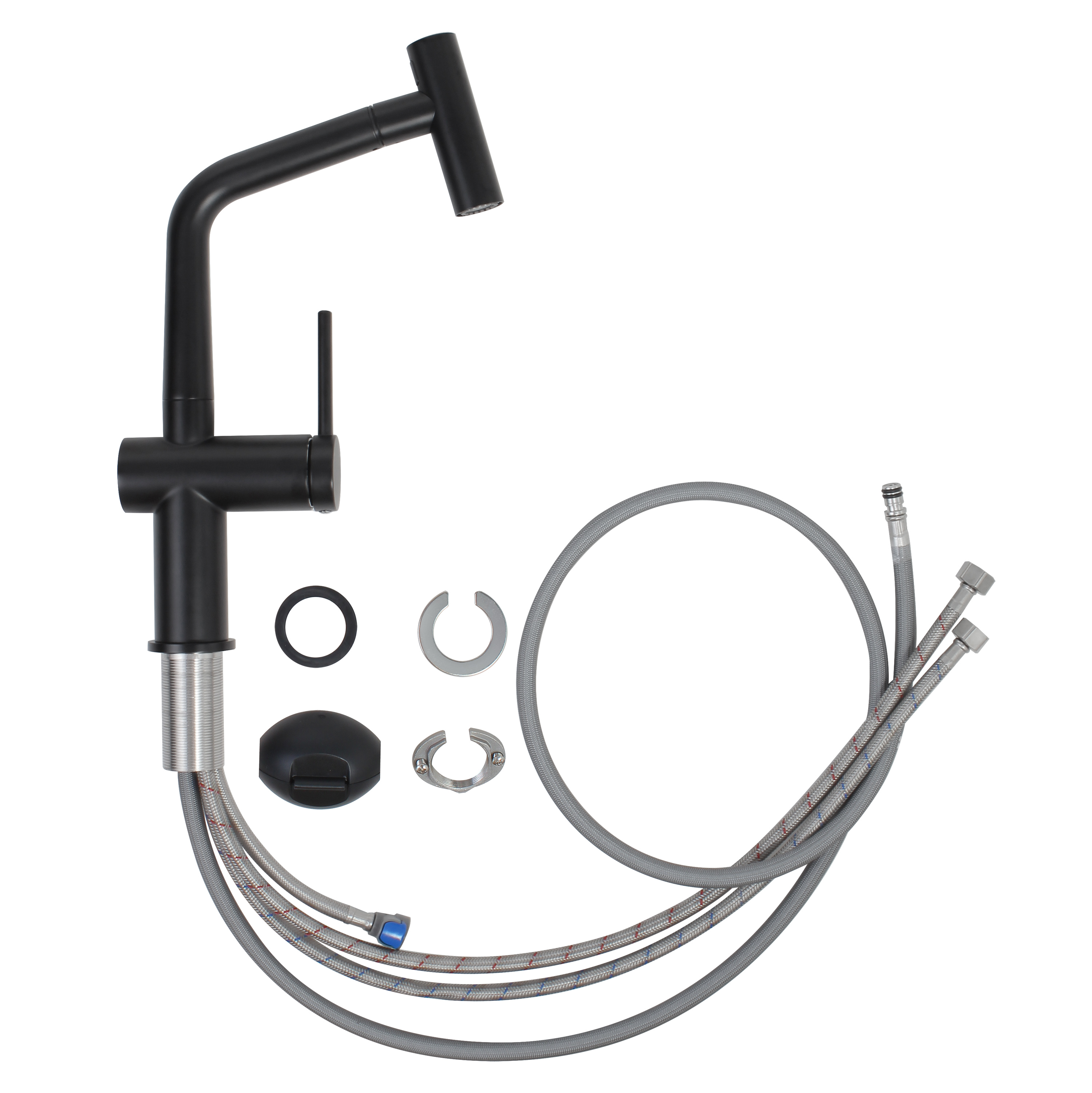 Timeless mitigeur d'évier à levier en acier inoxydable avec douchette extractible, monotrou, noir mat (TMLKF185BM) :