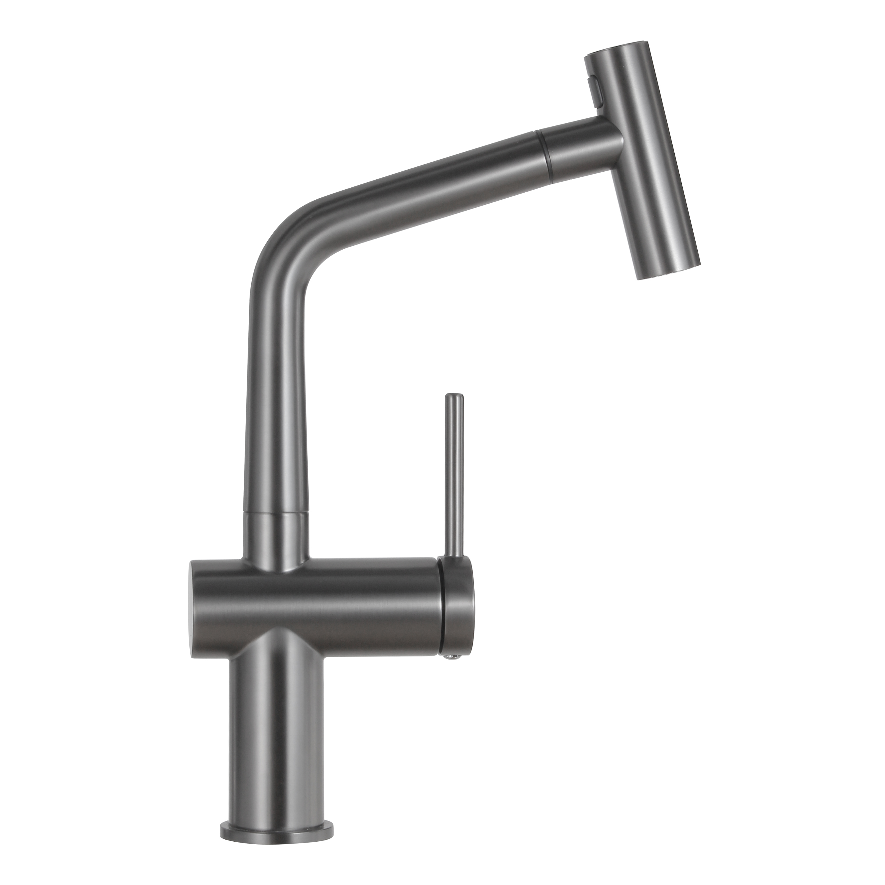 - Ceramia Timeless mitigeur d'évier à levier en acier inoxydable avec douchette extractible, monotrou, gun metal brossé (TMLKF185BGM)