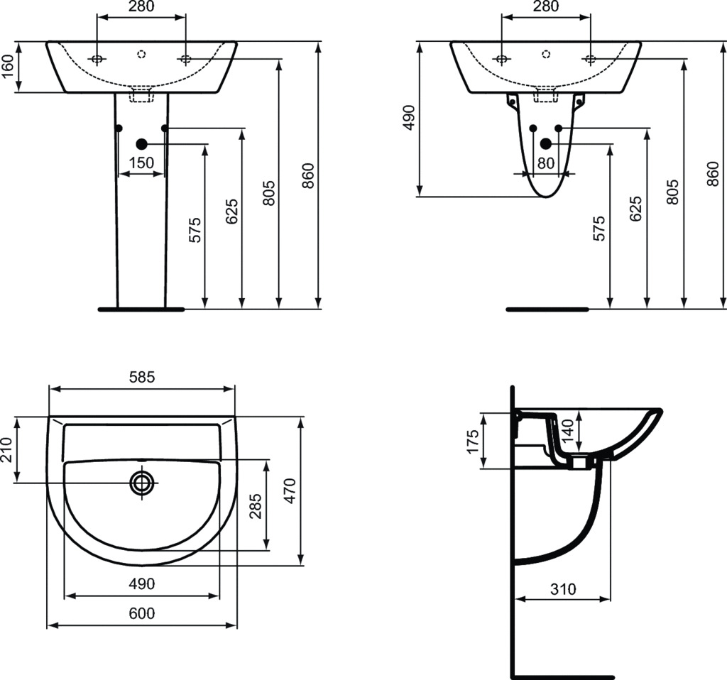 Porcher Lavabo Ulysse 60 x 47 cm, blanc brillant (P125601)