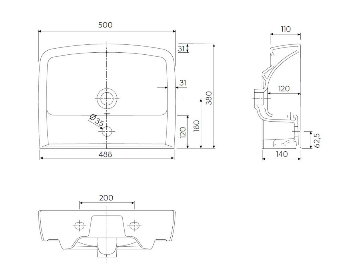 Caractéristiques du KOLO Rekord Lavabo polyvalent 50x38 cm, avec perçage et trop-plein (K91952000)