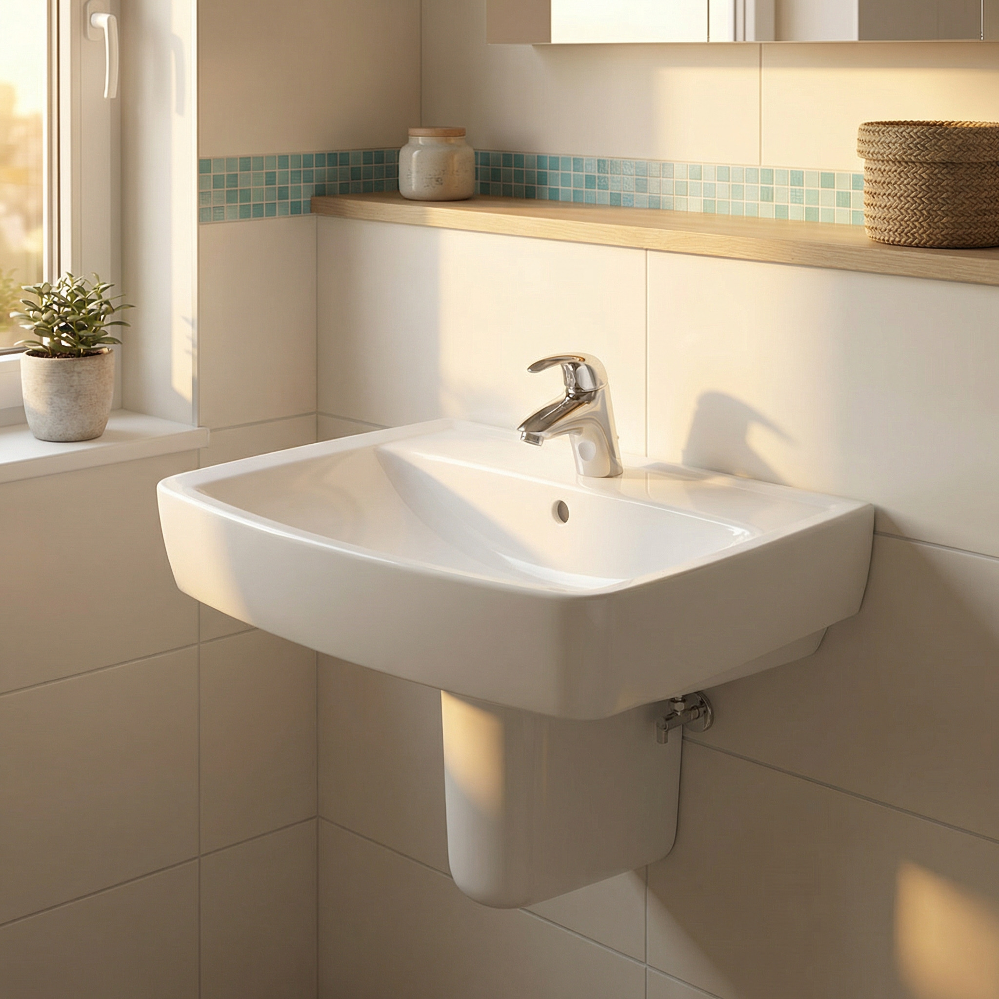Fabriqué en céramique sanitaire, il assure une excellente résistance à l’humidité, aux rayures et à l’usage quotidien. Son trou de robinetterie centré facilite l’installation d’un mitigeur standard, tandis que le trop-plein intégré garantit un confort et une sécurité d’utilisation au quotidien.