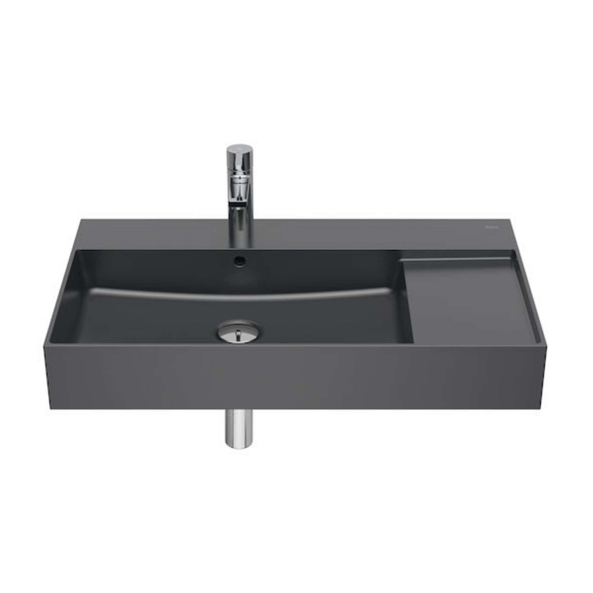 Roca Inspira Lavabo en Fineceramic avec trop-plein et tablette 49x80cm, autoportant ou à poser, Onyx (A32752B640)
