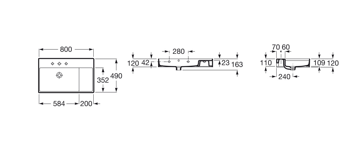 Caractéristiques du Lavabo en Fineceramic avec trop-plein et tablette 49x80cm, autoportant ou à poser, Onyx, Roca Inspira (A32752B640) :