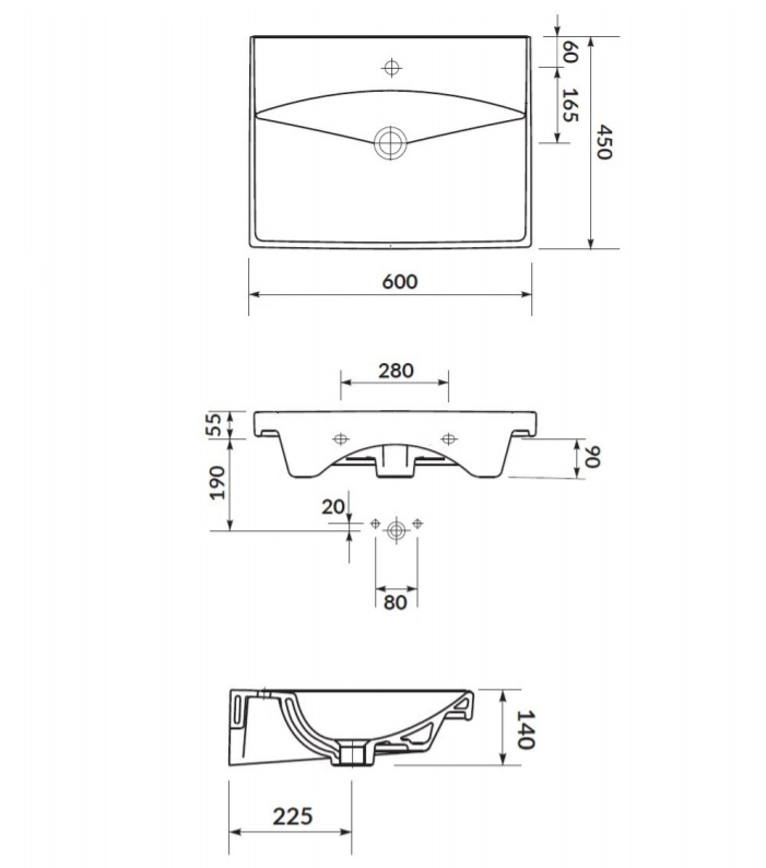 Caractéristique du Lavabo Brevis Swiss Aqua Technologies suspendu avec trou pour robinetterie au milieu, 60x45x14cm (SATBRE6045S) :